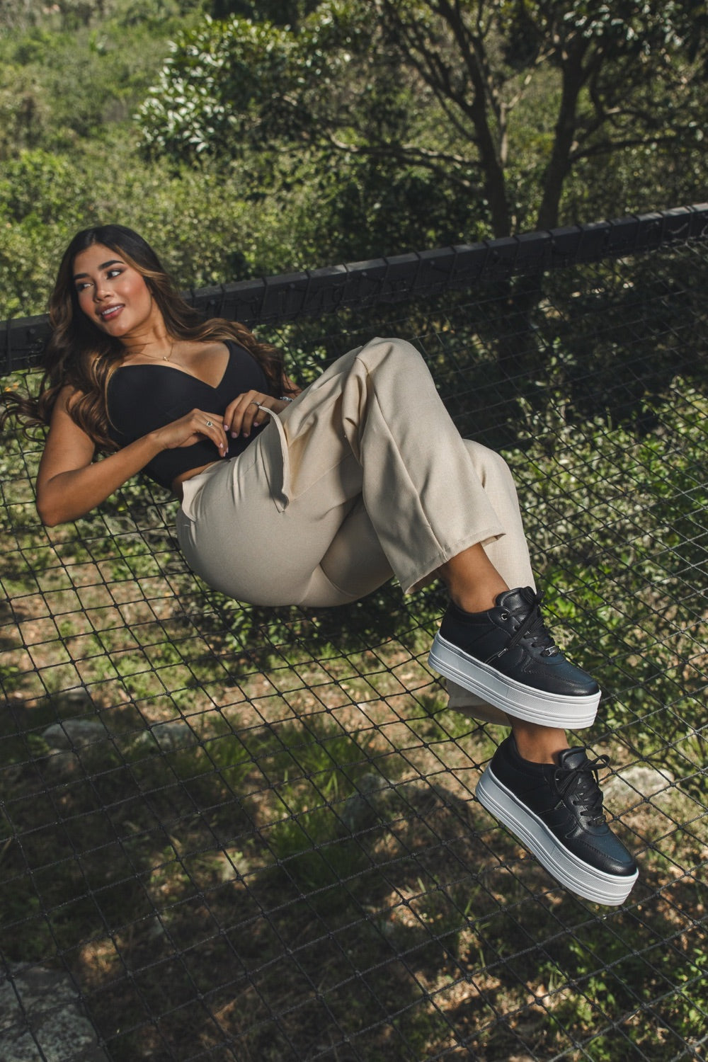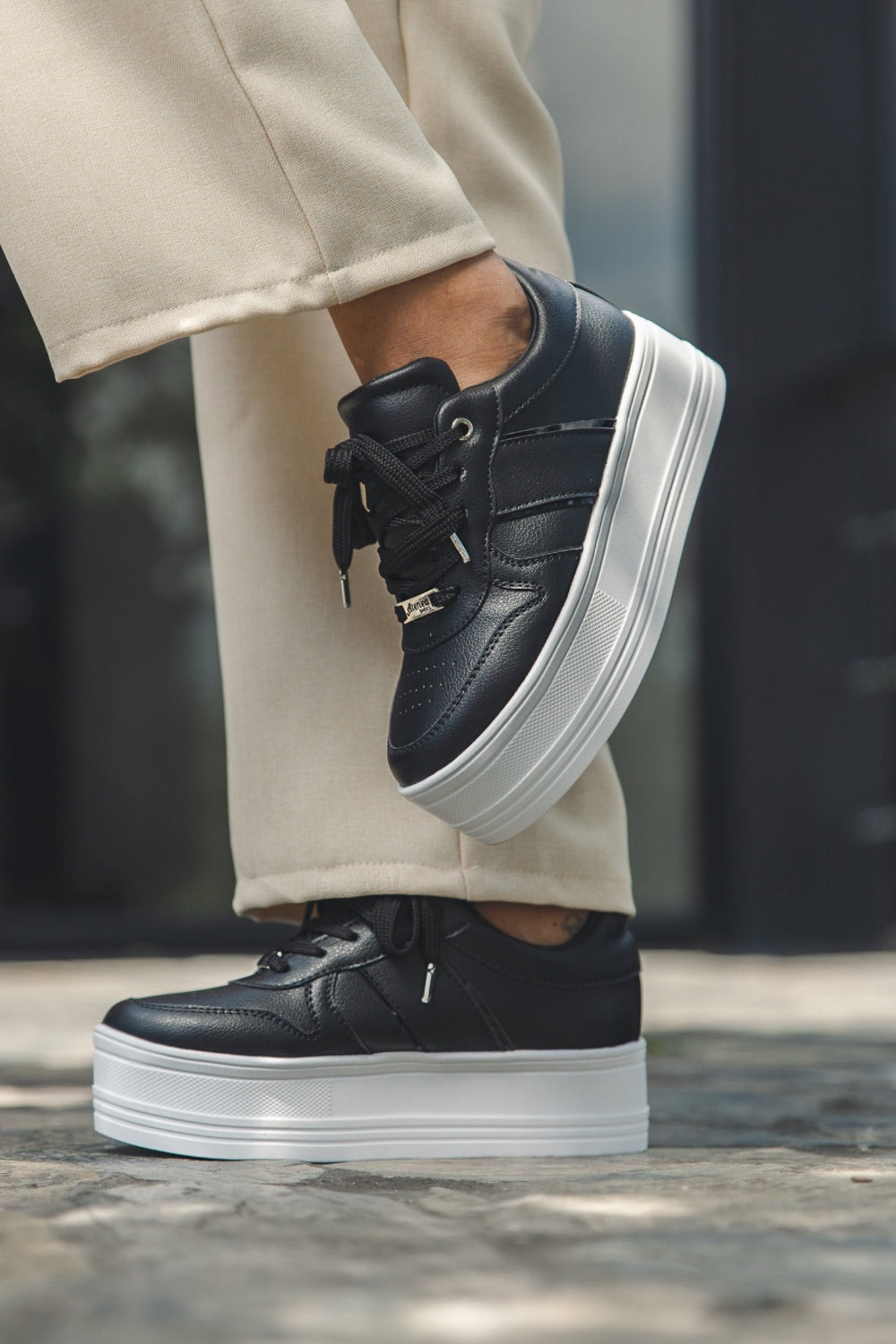 Descubre el estilo moderno de los zapatos tenis Adele Negro. Con una plataforma elegante, estos zapatos agregan altura y comodidad a tu look diario. Hechos con materiales de calidad, son ideales para todas tu día a día Aprovecha su diseño deportivo y femenino para destacar en cualquier ocasión.