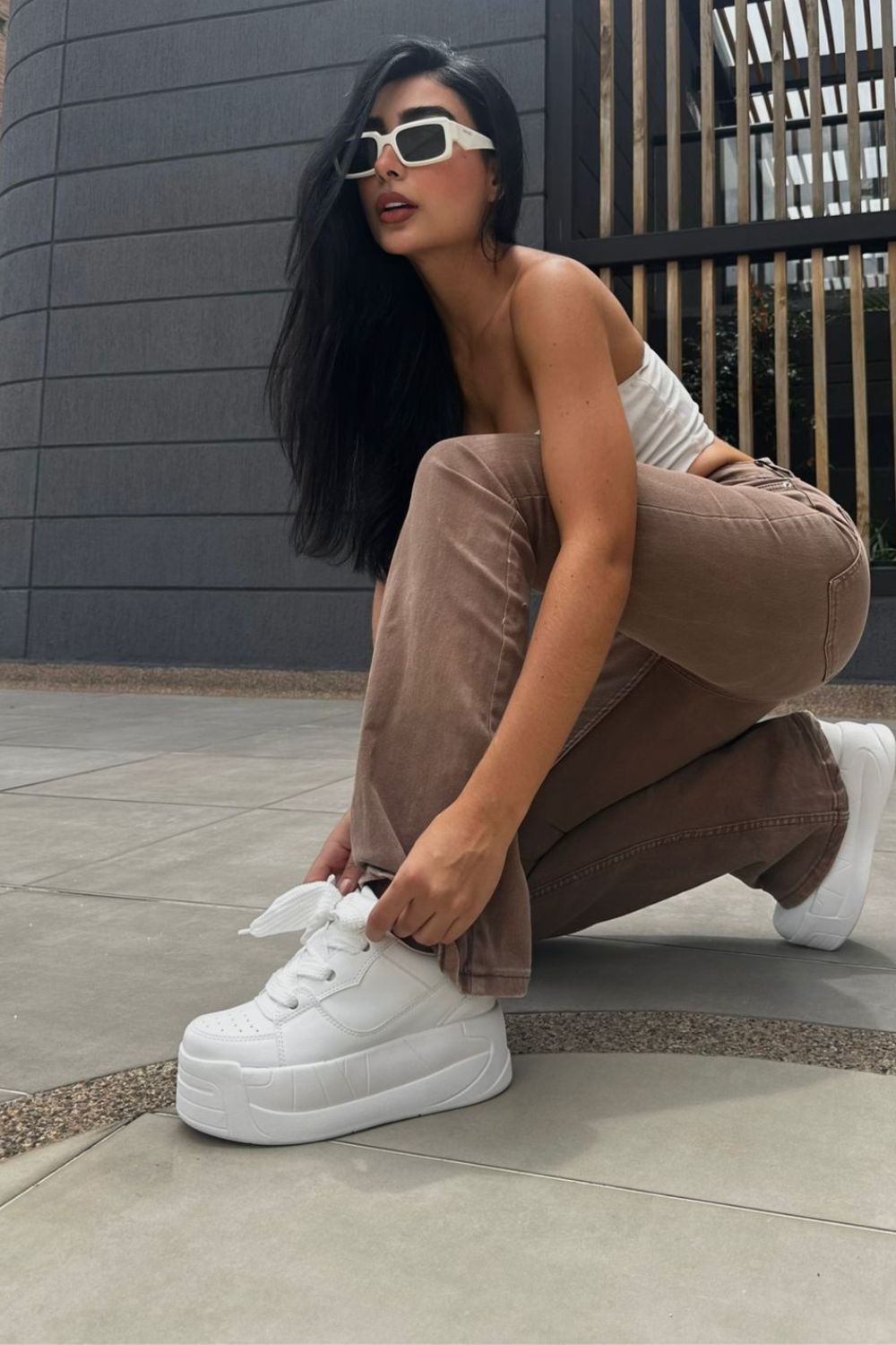 Descubre tu estilo con Anitta Blanco. Estos tenis de plataforma alta cuentan con un tacon interno que te dará altura y un cordon grueso para un look moderno. Disfruta de comodidad y moda a la vez.