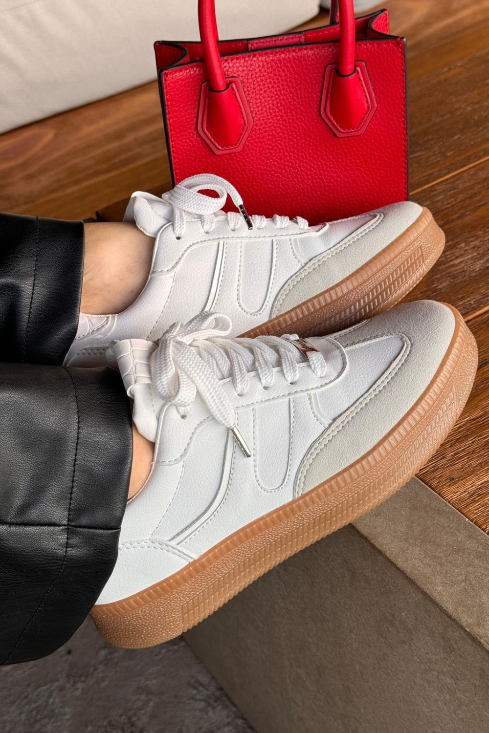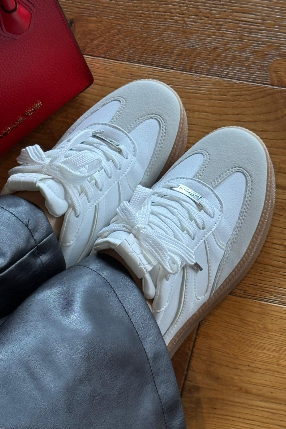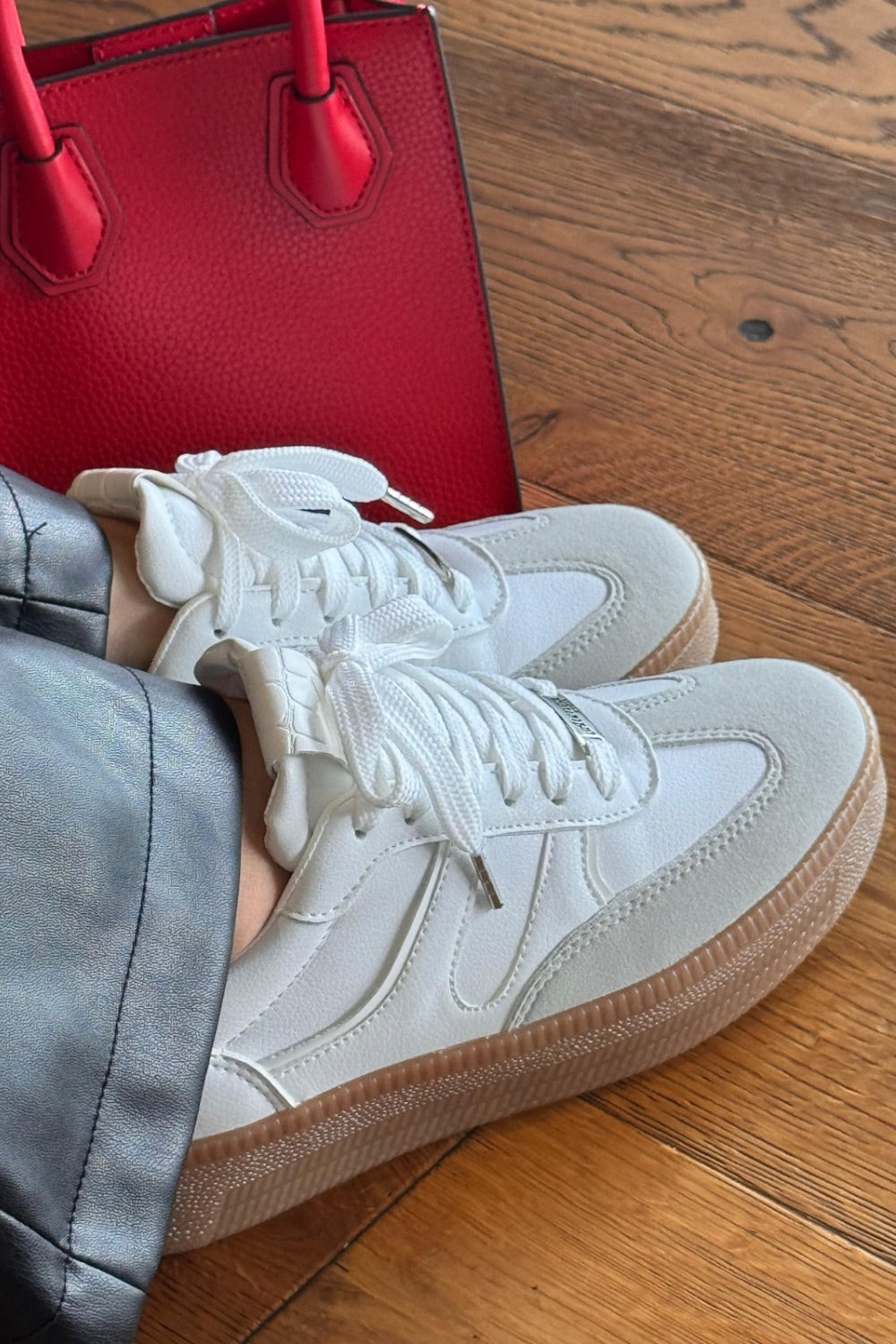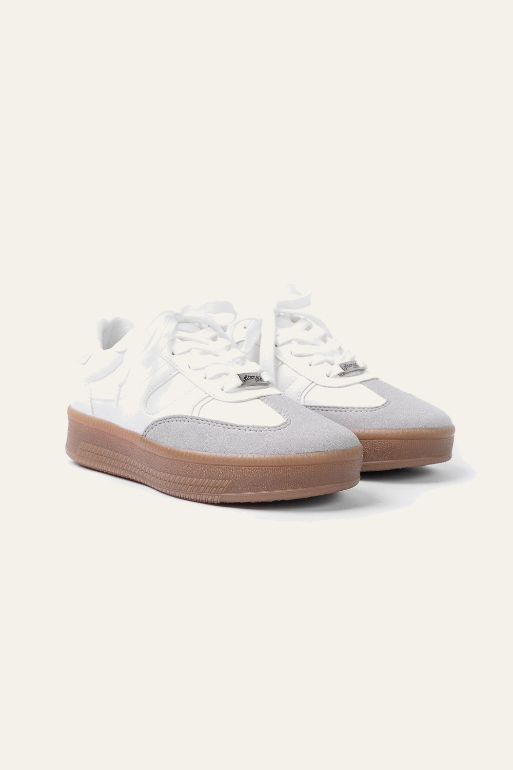 Un diseño contemporáneo que combina blanco con detalles en gris para lograr un contraste elegante y moderno. Ideal para complementar looks casuales con un toque urbano y sofisticado.