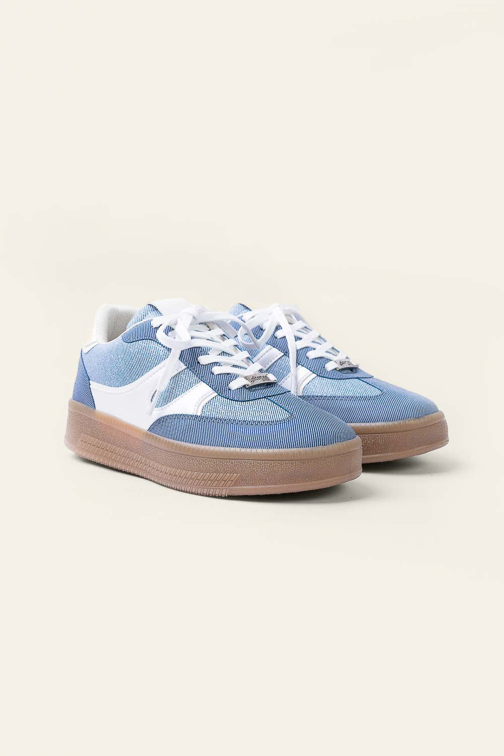 Un diseño moderno inspirado en el estilo denim que aporta un look casual con personalidad. Su tono azul combinado con detalles en beige crea un sneaker versátil y contemporáneo, ideal para outfits relajados con estilo.